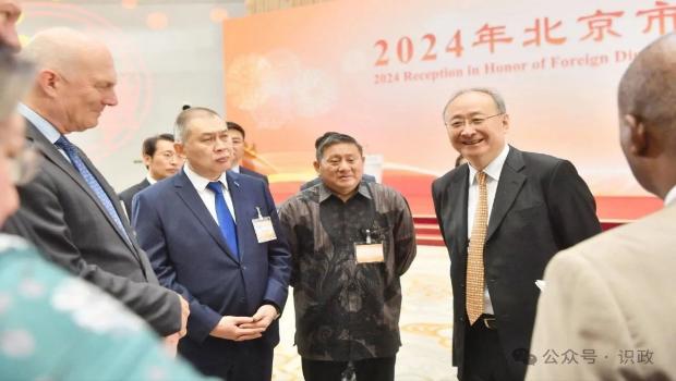 1 / 1 2024年北京市駐華使節招待會在園博園舉行,尹力致辭,殷勇主持