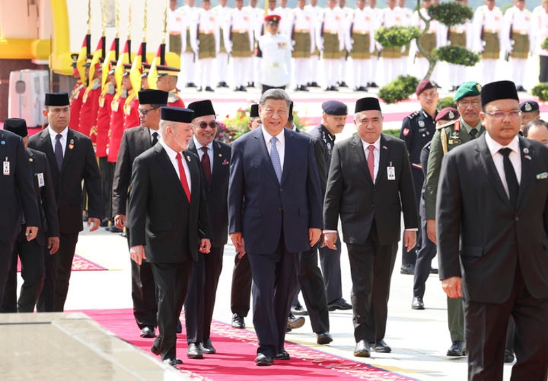 When Xi Jinping arrived by limo, Sultan Ibrahim and Malaysian Prime Minister Anwar Ibrahim warmly greeted him at the alighting point of his limo. As the two heads of state stepped onto the stand, the military band played the national anthems of China and Malaysia, and a 21-gun salute was fired. Xi Jinping reviewed the honor guard. The two heads of state entered the National Palace hall and shook hands and exchanged greetings with each other's accompanying officials.?