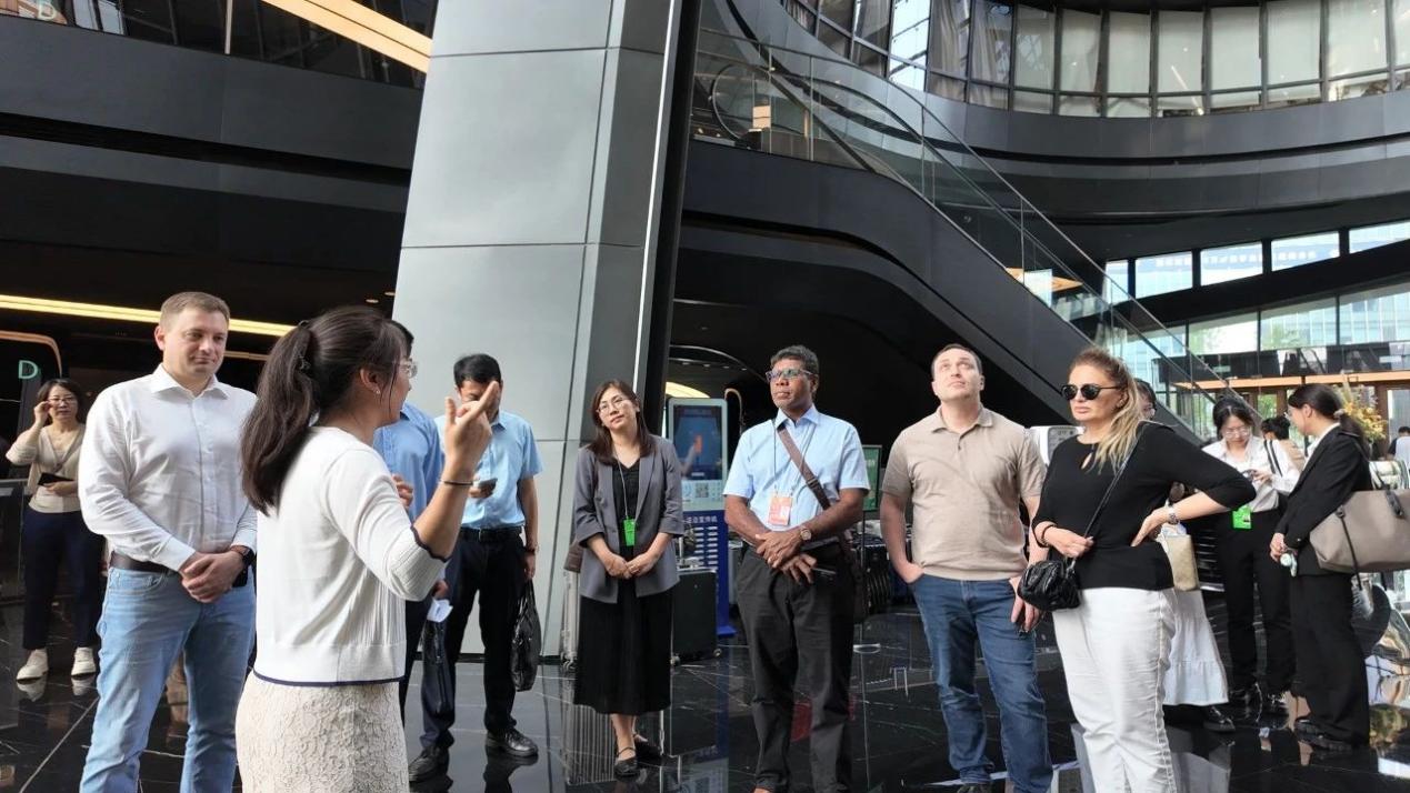 On the afternoon of July 11, international guests of the Global Civilizations Dialogue Ministerial Meeting visited Beijing’s Lize Financial Business District. (Photo by Liu Shuang)