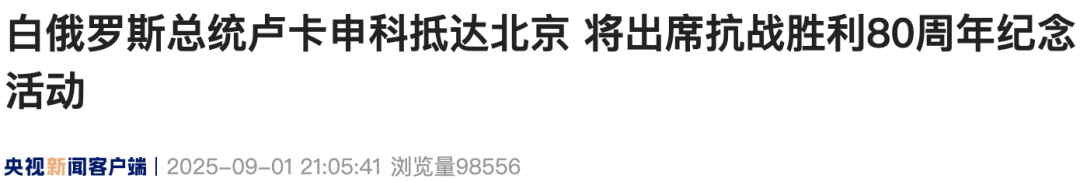 On the evening of September 1, Belarusian President Alexander Lukashenko arrived in Beijing by high-speed train to attend the events commemorating the 80th anniversary of the victory in the Chinese People’s War of Resistance Against Japanese Aggression and the World Anti-Fascist War.