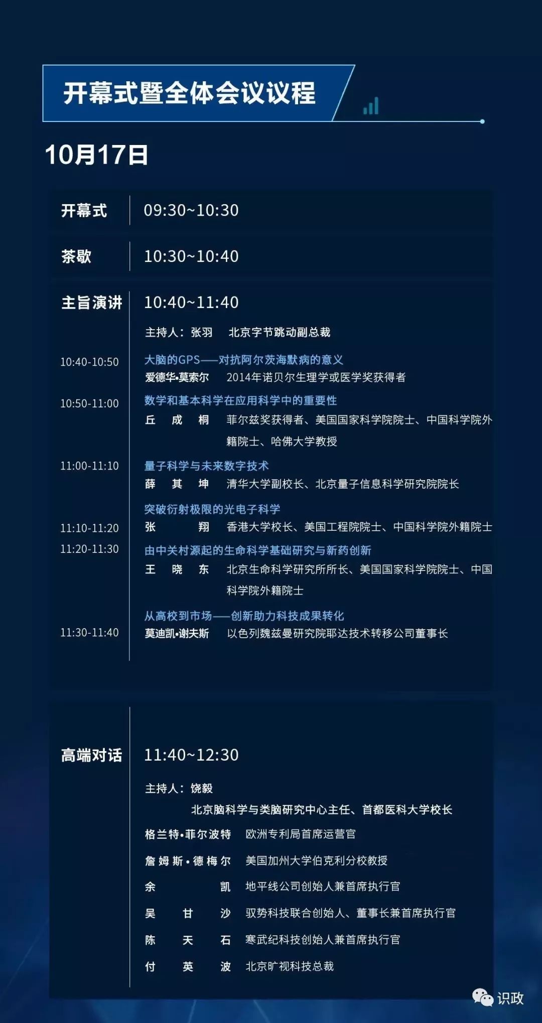 世界知識產權組織副總干事王彬穎,國際科技園及創新區域協會總干事艾巴·倫德,2014年諾貝爾生理學或醫學獎獲得者愛德華·莫索爾在開幕式上致辭,中央有關部門和北京市領導孫志軍、相里斌、林克慶、崔述強、閆傲霜、隋振江、林撫生出席相關活動。