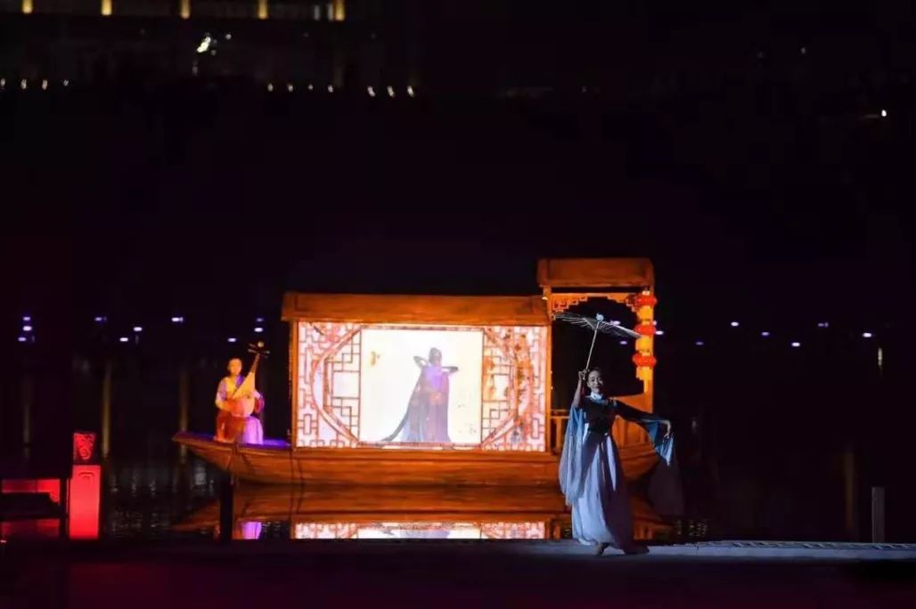 通州因運河而興,城市副中心依運河而建。當晚,舞蹈《運河傳奇》用多媒體技術和巧妙編排,呈現出一場如夢如幻的視覺盛宴。表演所使用的船只經過特殊改造,將普通游船改造成中國古代大運河上的烏篷船,加裝高科技冰屏,實現播放視屏與透視的雙重功能。