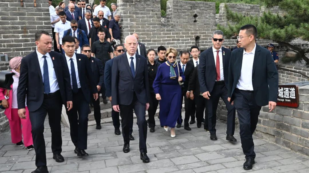 5月31日,突尼斯總統賽義德登上八達嶺長城。這也是八達嶺長城景區第四次接待突尼斯國家元首、政府首腦。
