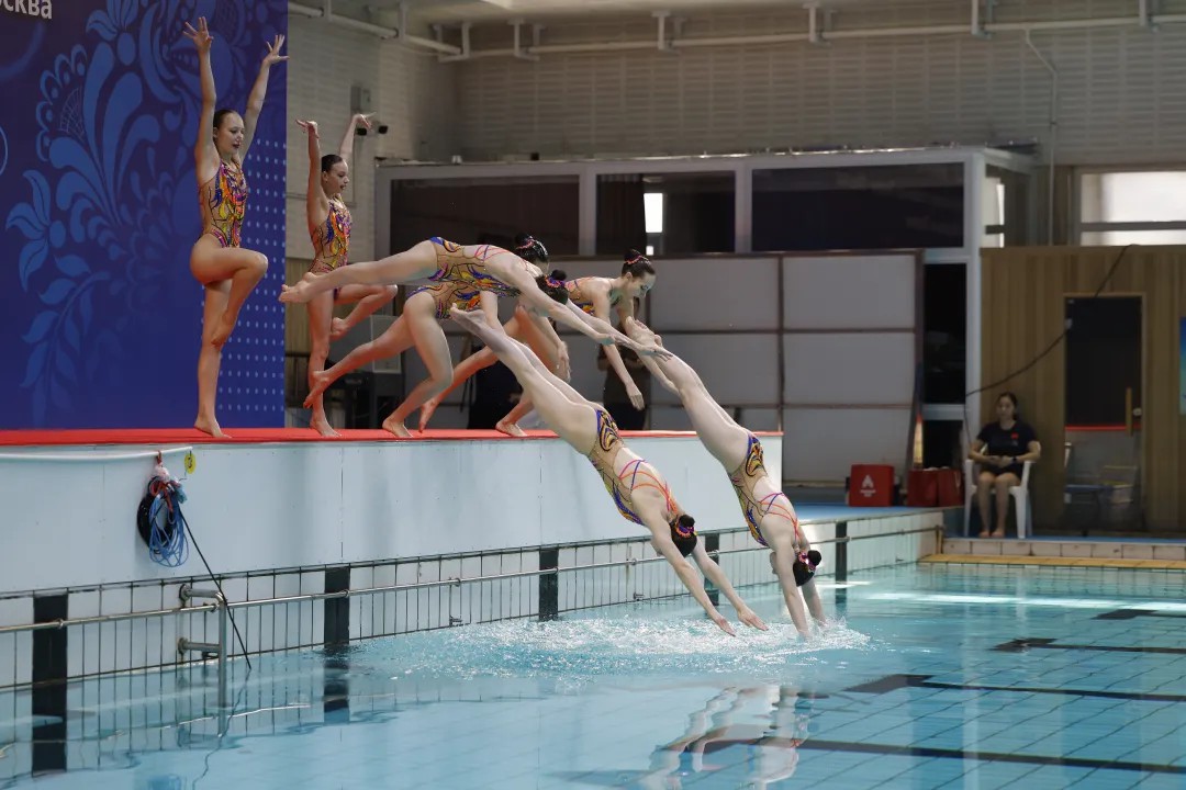 激情的音樂聲響起,隨著隊員靈動的身姿,翻滾、躍步、托舉,清澈的泳池中仿佛綻開朵朵美麗的鮮花……北京和莫斯科兩市花樣游泳隊上演了一場精彩的“水上芭蕾”。
