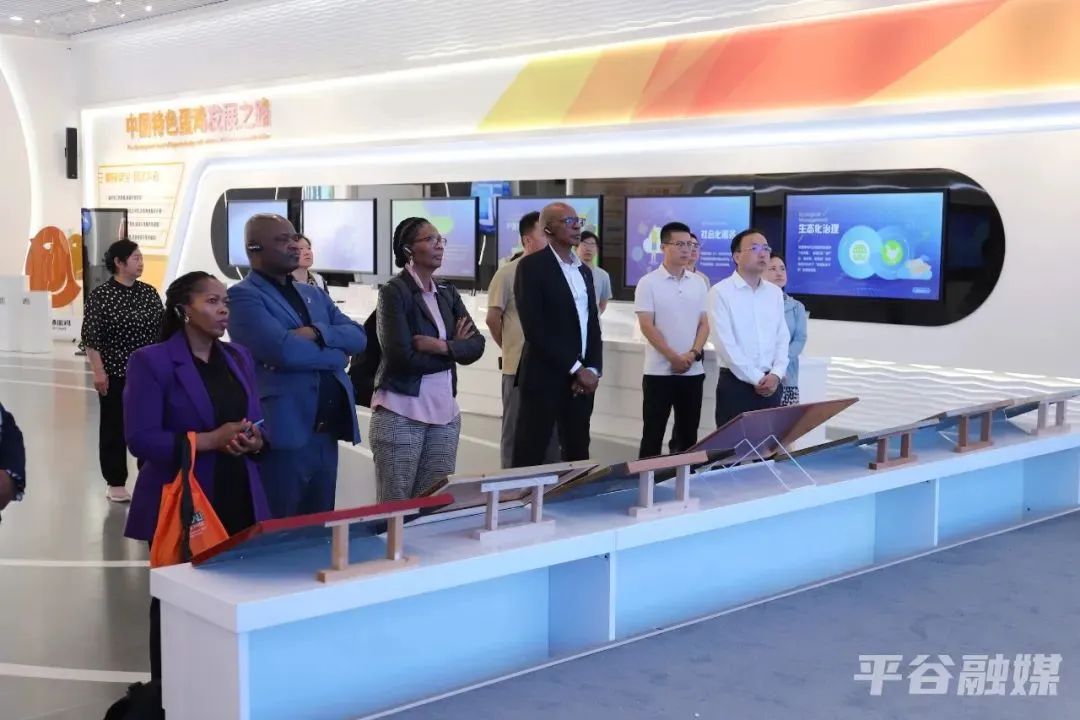 美使館一行到劉家店鎮綠農興云基地和峪口鎮西營村未來果園察看平谷區科技化高效種植大桃生長情況和主要做法,到大興莊鎮國農港供銷村播產業園了解政府、機構如何通過直播基地扶農助農,實現鄉村振興。南非代表團一行實地走訪了峪口禽業、京瓦溫室園藝示范園、國農港供銷村播產業園、紫興園、南山村,細致了解種禽流感防治、農產品出口、技術人才聯合培養等情況。