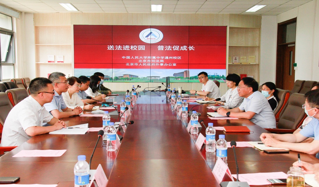 北京學校執行校長、人大附中(通州校區)書記兼執行校長徐良云介紹了北京學校和人大附中(通州校區)的建設歷程和發展情況,分享了推動黨史學習教育結合學科專業教育方面的經驗做法,對市外辦和司法局此次開展的“送法進校園 普法促成長”活動表示歡迎和感謝。他表示,將把黨史學習教育的成果貫徹到依法治校和特色辦學中,將北京學校和人大附中(通州校區)建設成為與城市副中心功能相匹配的一流院校。