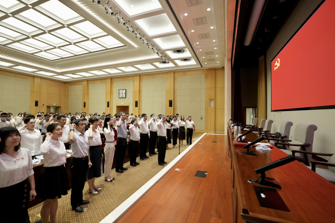 新入黨的11名黨員進行入黨宣誓,全體黨員重溫入黨誓詞