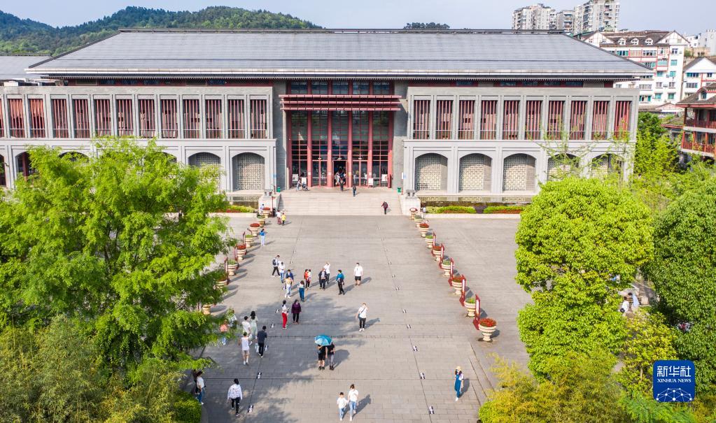 游客在遵義會議紀念館參觀(5月3日攝,無人機照片)。新華社記者 陶亮 攝