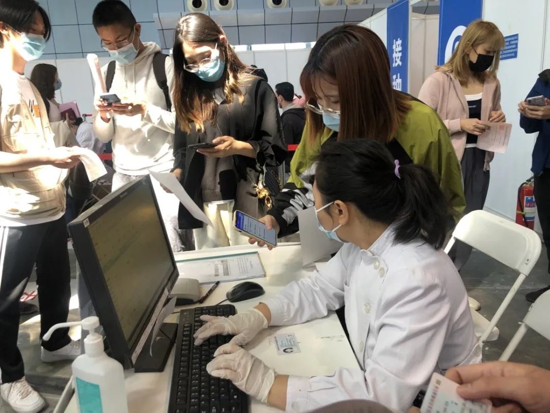 5月7日,部分港澳學生在中關村國家自主創新示范區展示中心接種新冠疫苗