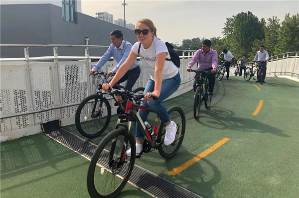 ▲交流項目學員考察回龍觀至上地自行車專用道路