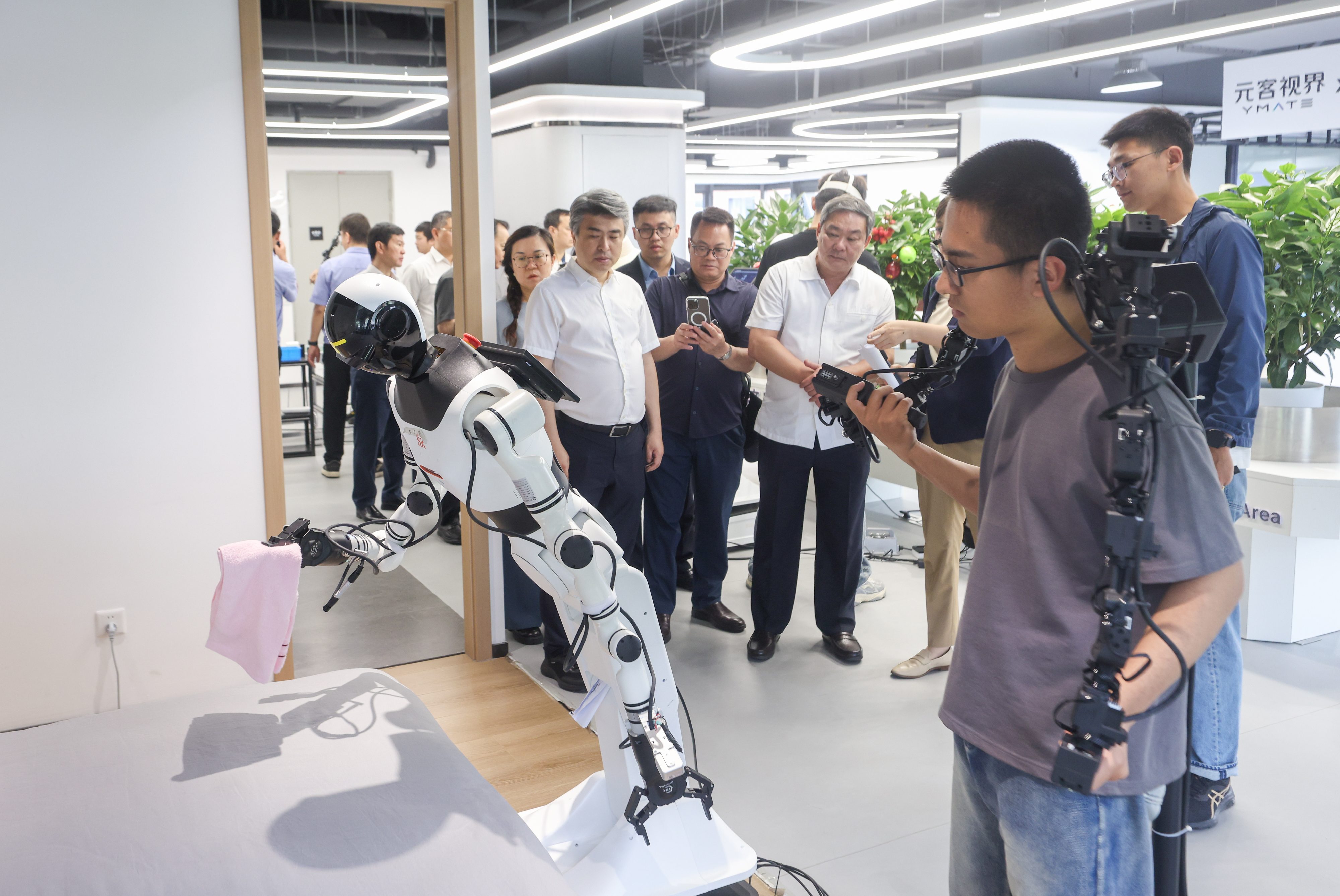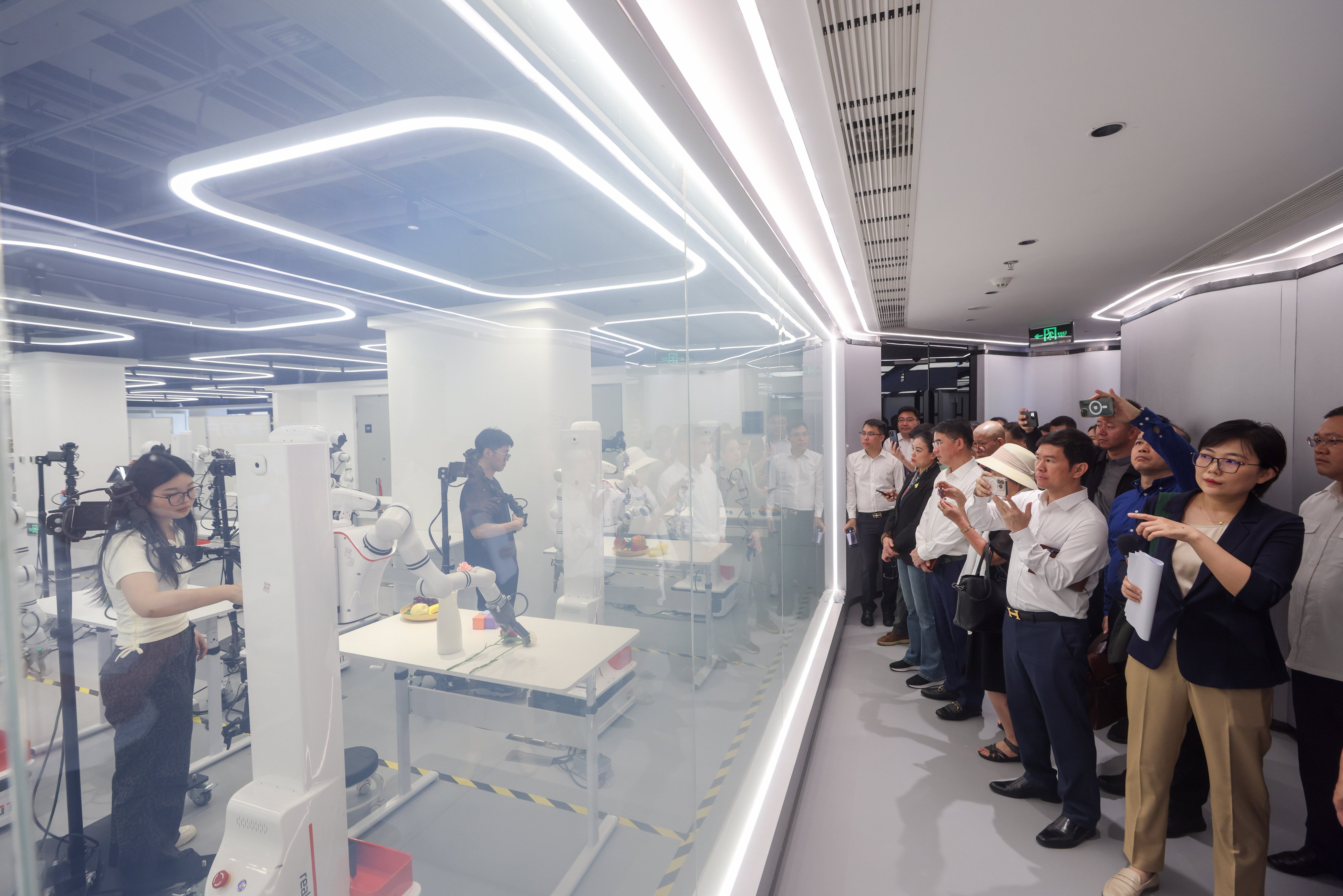 作為城市更新和產業升級轉型的代表案例,首鋼園給代表團留下了深刻印象。在首鋼園三高爐,代表團詳細了解首鋼園區工業遺存改造,特別是變身活力秀場情況。在香格里拉酒店,代表團交流了解將舊工廠打造成全新藝術酒店的經驗做法;在中關村科幻產業創新中心,參觀人形機器人數據訓練中心,興致勃勃地體驗制作咖啡、收納整理等機器人應用場景。代表團成員紛紛點贊,表示首鋼園用好園區資源,推動體育、科技、旅游等產業融合發展,成功實現了老工業區的轉型蝶變,相關經驗十分值得學習借鑒。