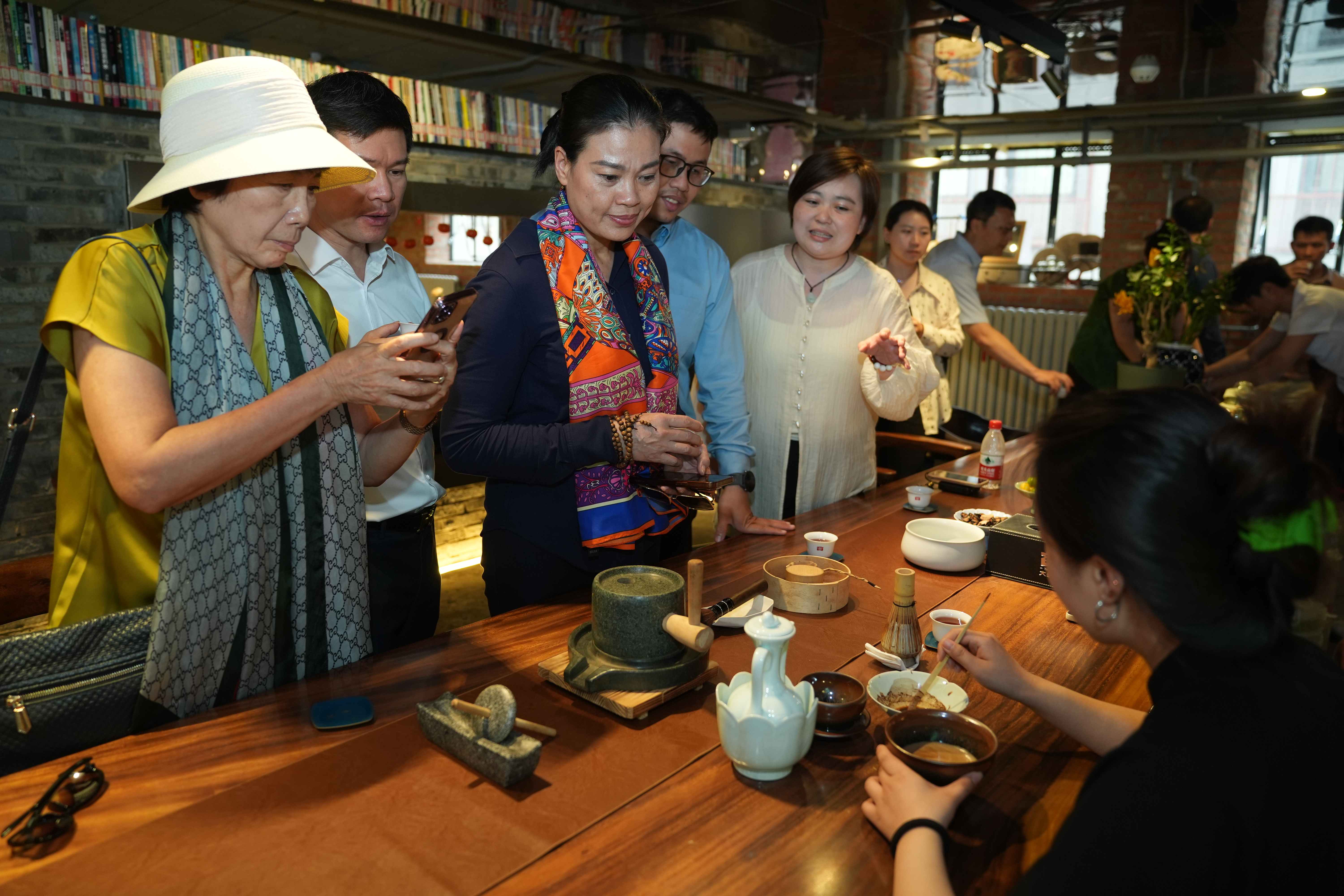 代表團此行還重點關注我市文化產業發展,到訪鼓樓、宏恩觀、77文化創意產業園、798藝術區等地,了解北京中軸線保護與利用、文化產業發展政策、文化企業支持舉措等。在時間博物館,代表團成員興致勃勃地參與以中軸線為主題的VR體驗活動并觀看擊鼓表演,紛紛稱贊文化新質生產力驅動老城區煥新,打造文化消費體驗新場景的成功做法,希望與北京市相關部門盡快對接,推動雙方文化創新交流與合作。