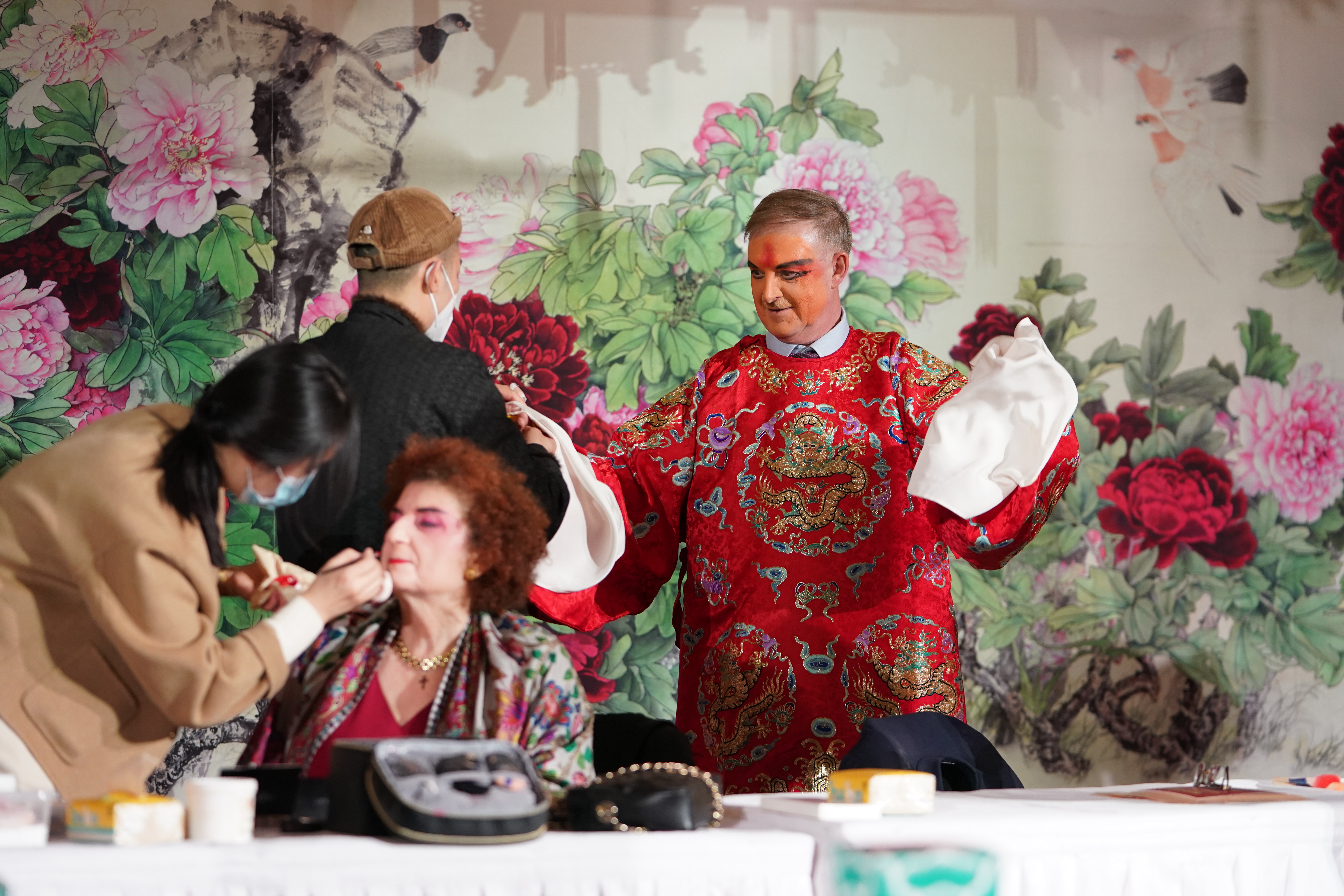 遴選“戲曲盔頭”、“彩塑臉譜”、“內畫鼻煙壺”、“京胡制作”等8個與戲曲藝術相關的非遺項目現場展示?,F場,非遺傳承人進行了認真細致的講解,駐華使節們興趣濃厚,不時提問,詳細了解原材料、制作工藝等問題,有些還饒有興致地拿起畫筆,現場勾勒起京劇臉譜。