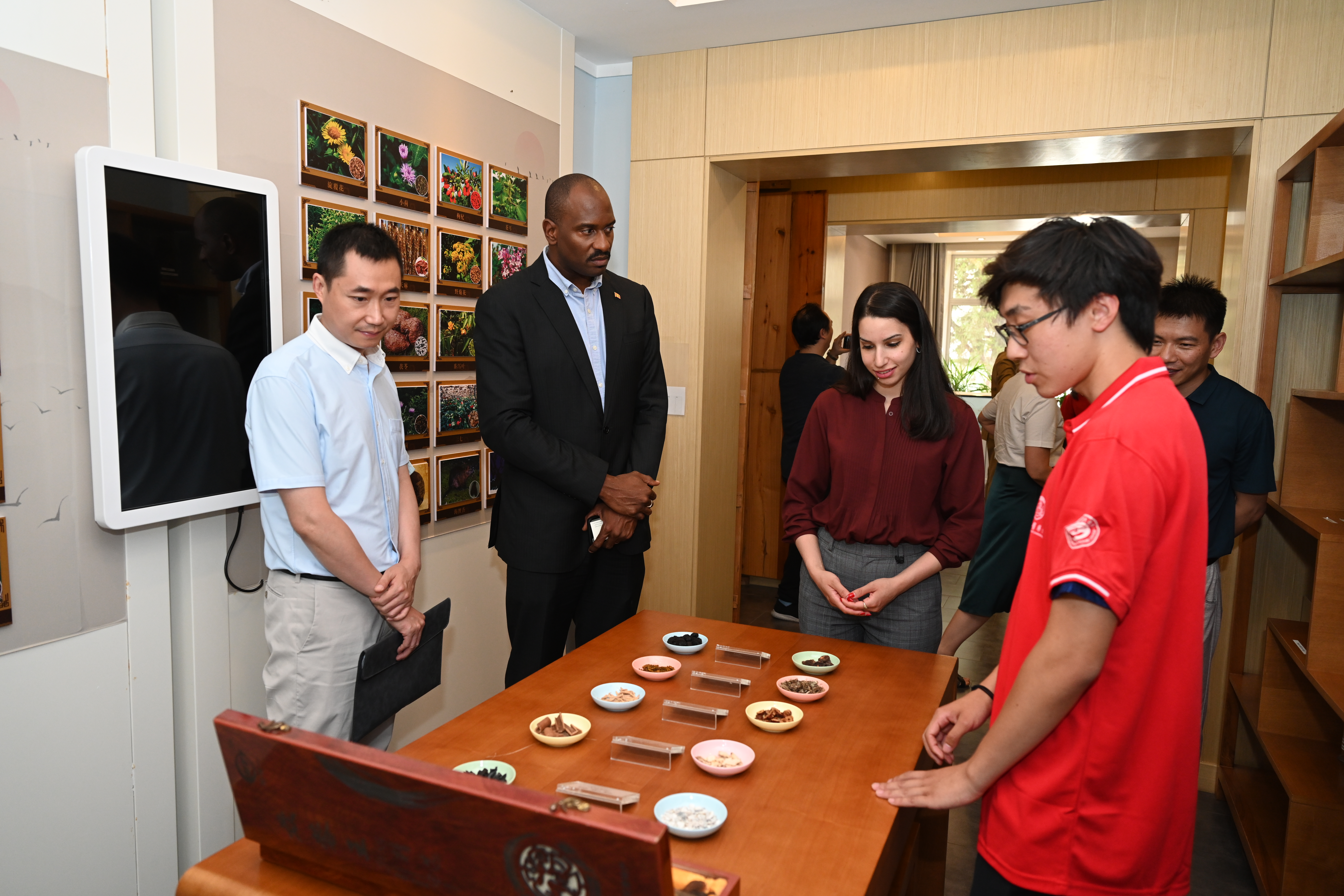 6月30日下午,由北京市人民政府外事辦公室、北京中醫藥大學共同主辦的“駐華使節感知北京”系列活動走進北京中醫藥大學。來自格林納達、塞爾維亞、新加坡、尼泊爾、哈薩克斯坦、沙特阿拉伯、贊比亞、乍得、多米尼加等10余個國家的15名駐華外交官沉浸式體驗中醫藥文化。
