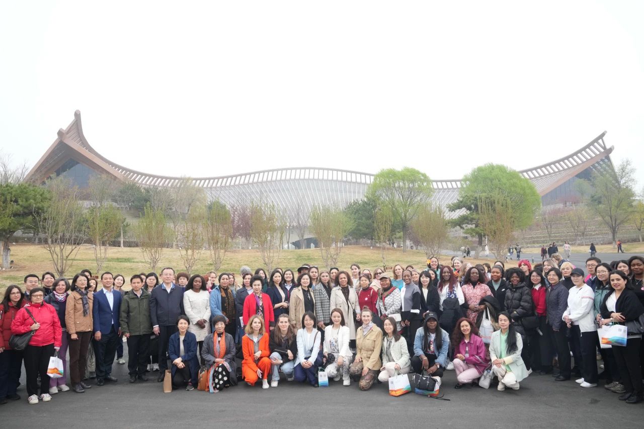 到達延慶后,首站來到北京世園公園。半環形的中國館屹立于園區核心位置,木質人字支撐屋頂造型、“四水歸堂”的唯美水院、先進的雨水收集和地道風等綠色節能技術,展現著中國傳統建筑之美與生態理念的完美結合。外交官和外國記者們紛紛以中國館為背景留影,在媯川山水間記錄下美好瞬間。